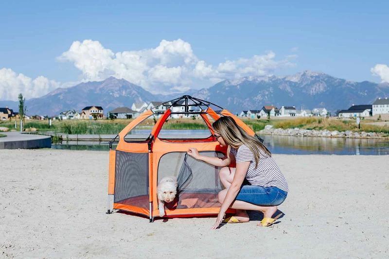 The portable travel playpen is perfect for newborns . toddlers . infants . kids . and even works with dogs as well! It comes with a uv-sunshade that goes over the top to block harmful rays from entering the playpen . and is build with high-quality fiberglass and weave-mesh which will last for years to come.