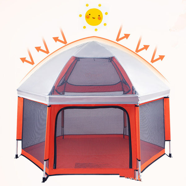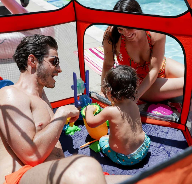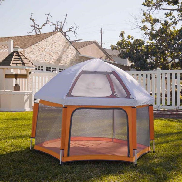 Perfect for use both indoors and outdoors . the unique portable playpen is large enough for multiple kids measuring 4.9 feet in diameter x 3.3 feettall when fully setup. It packs into a handy shoulder bag so you can easily bring it anywhere.