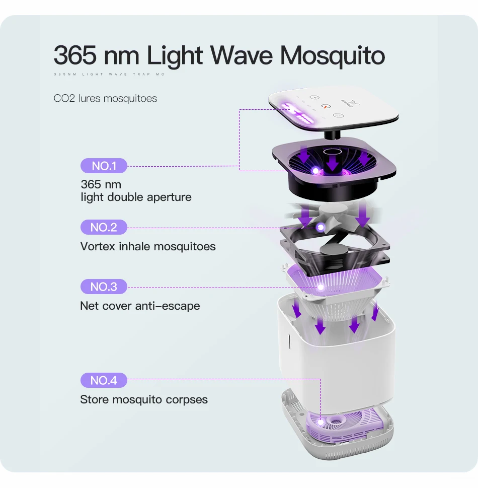 Using new and improved innovative technology . with an 8 blade stronger suction rate . eradicate bugs and mosquitoes entirely from your home!