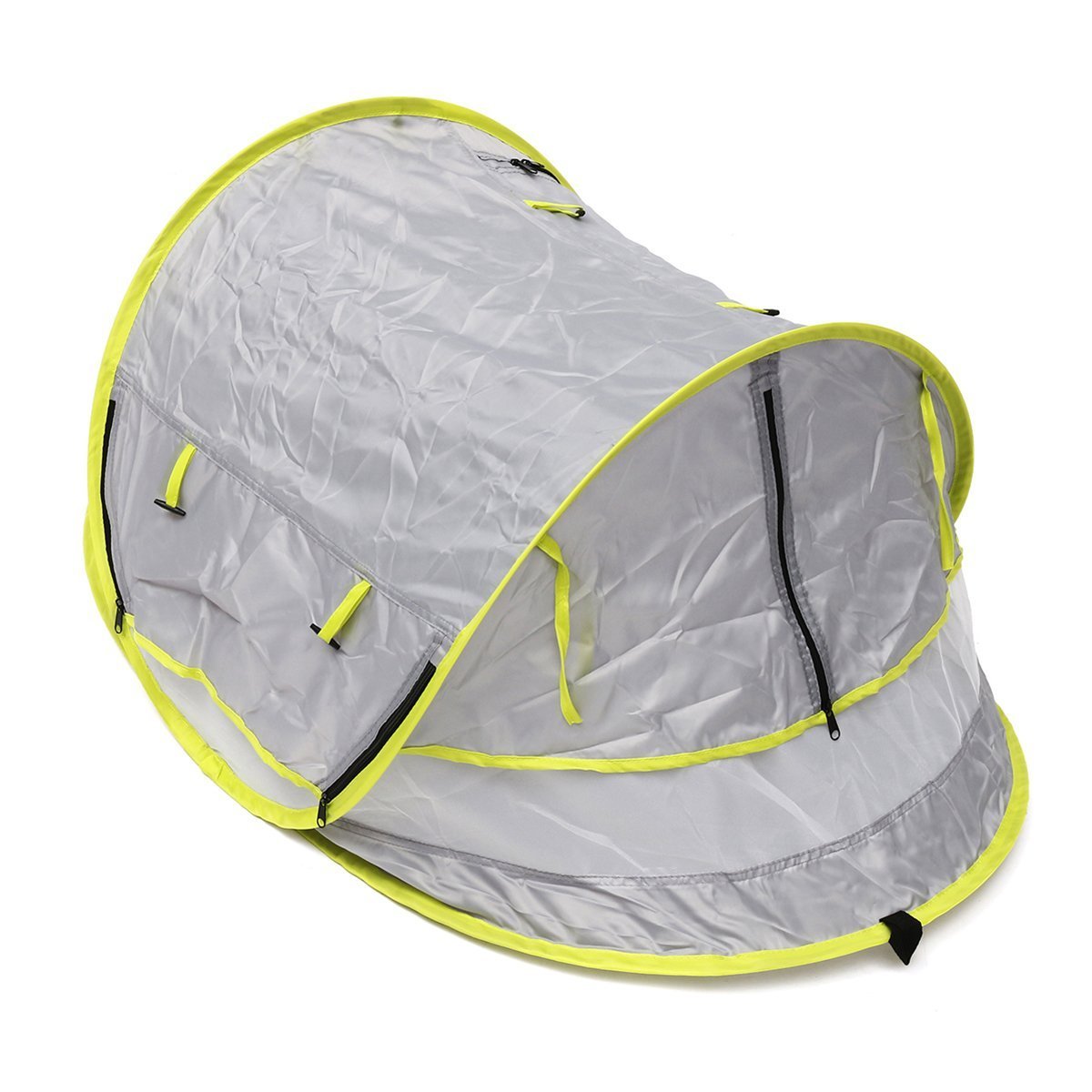 Easy Operation ?C Quick and easy to fit . front with a zipper . you could freely open it as you like .and comes along with 2 tent pegs to keep the tent securely fixed on the ground/sand.
